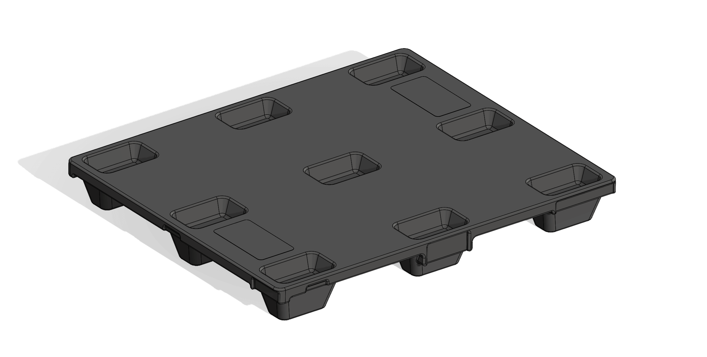Solid, medium-density polyethylene plastic. Smooth top allows even weight distribution and stability during transport. Four-way forklift entry. Ask about additional color options.