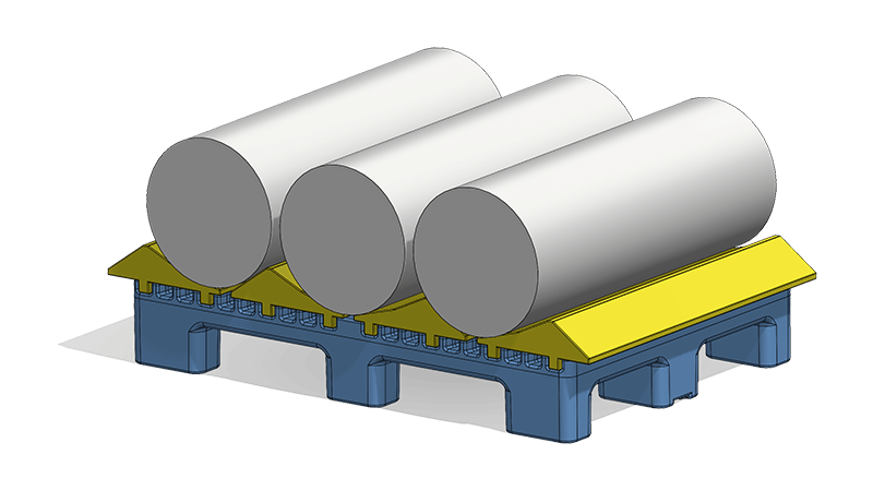 This roll pallet is often used in flexographic printing applications, including packaging and label printing. Roll pallets can also be used for racking storage.
